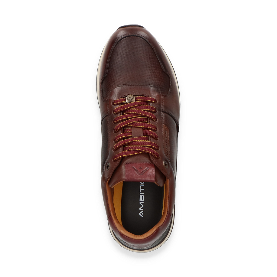 Preis inkl. MwSt.Der Ambitious Sneaker präsentiert sich in einem eleganten Dunkelbraun, das durch seine hochwertige Lederoberfläche besticht. Die sorgfältig gearbeiteten Details und die kontrastierenden Schnürsenkel verleihen diesem Schuh für Herren einen modernen und zugleich klassischen Look. Die Kombination aus verschiedenen Ledertexturen und der dezenten Logo-Prägung unterstreichen den anspruchsvollen Stil, während die gepolsterte Ferse zusätzlichen Komfort bietet.